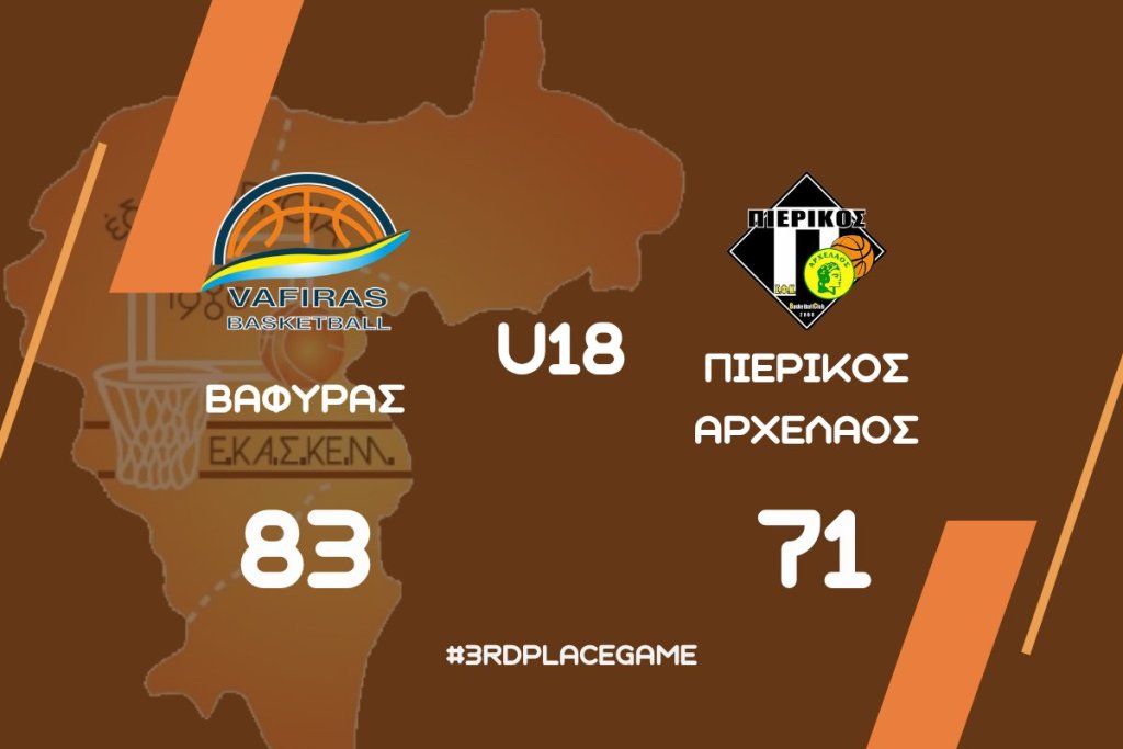 Ο Πιερικός Αρχέλαος ηττήθηκε με 83-71 από το Βαφύρα, στο Δημοτικό Αθλητικό Κέντρο Κολινδρού, στο μικρό τελικό του Final Four του πρωταθλήματος εφήβων της ΕΚΑΣΚΕΜ. Διαιτητές: Μαρμαρίδης, Μητώνας. Δεκάλεπτα: 20-9, 44-28, 67-45, 83-71. ΓΑΣ Βαφύρας Δίου (Σαραπτσής): Νταμπίζας 7 (2), Καραγεώργης 22 (1), Τσιτσιμπέος 8 (1), Ζάζας 16, Παχής 26 (4), Ψωμιάδης 2, Γκρίνιας, Ασλανίδης. […]