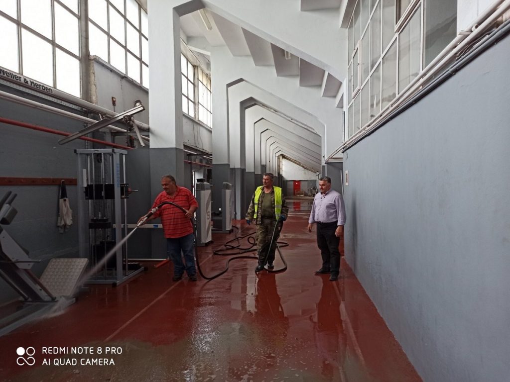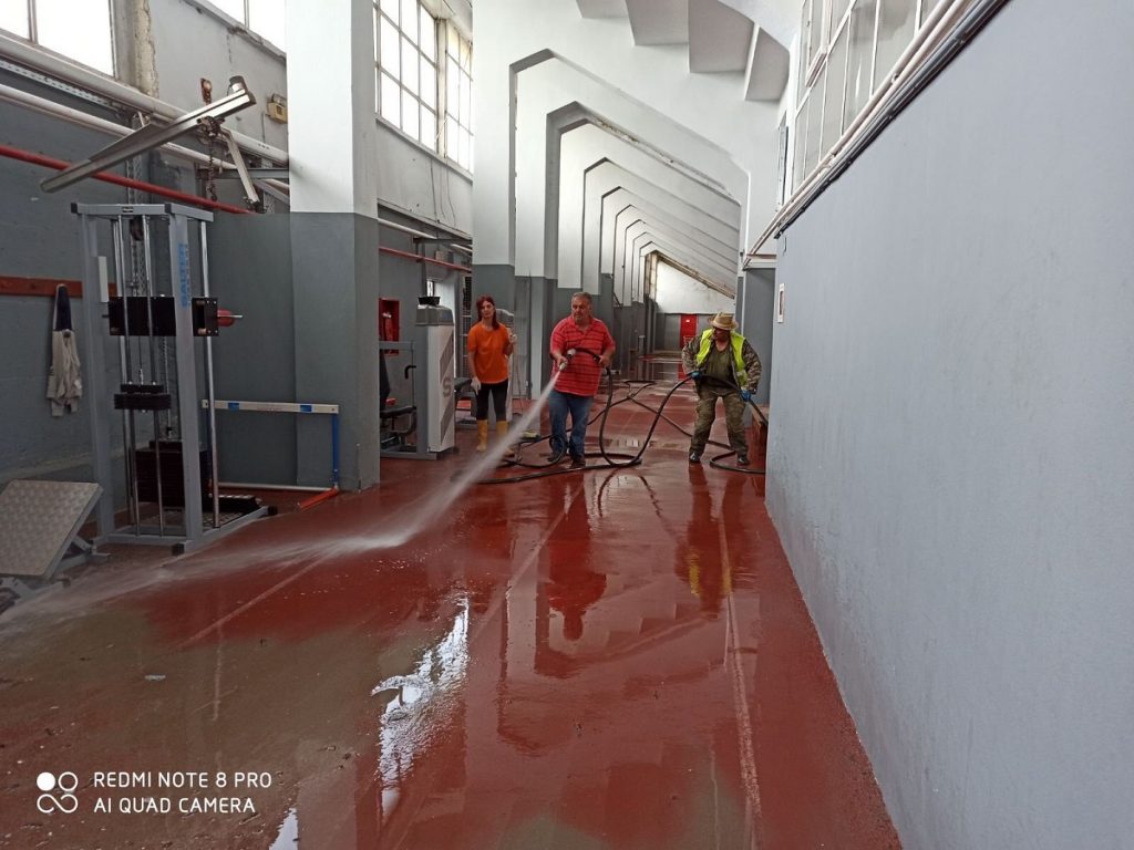 Παράλληλα με τις παρεμβάσεις συντήρησης των αθλητικών εγκαταστάσεων, στο Α’ Δημοτικό Αθλητικό Κέντρο που υλοποίησαν ο Δήμος Κατερίνης και ο ΟΠΠΑΠ αξιοποιώντας στο μέγιστο βαθμό, τις συνθήκες και τη συγκυρία των κλειστών λόγω της πανδημίας αθλητικών χώρων, συνεργείο της Αντιδημαρχίας Καθαριότητας, προέβη χθες, στο πλύσιμο του χώρου άθλησης (αίθουσα οργάνων γυμναστικής) κάτω από την κερκίδα του σταδίου.