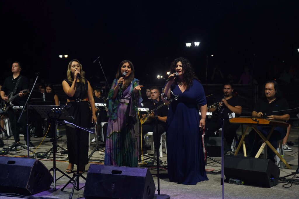 Επί σκηνής. Στη μουσική διεύθυνση ο μαέστρος Νίκος Πατρής, στο τραγούδι το καλλιτεχνικό τρίο με τη Ζωή Παπαδοπούλου, τη Φεβρωνία και τη Χρυσάνθη Ευαγγελοπούλου, καθώς και η Ορχήστρα Νέων Δίου.