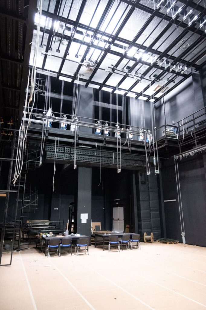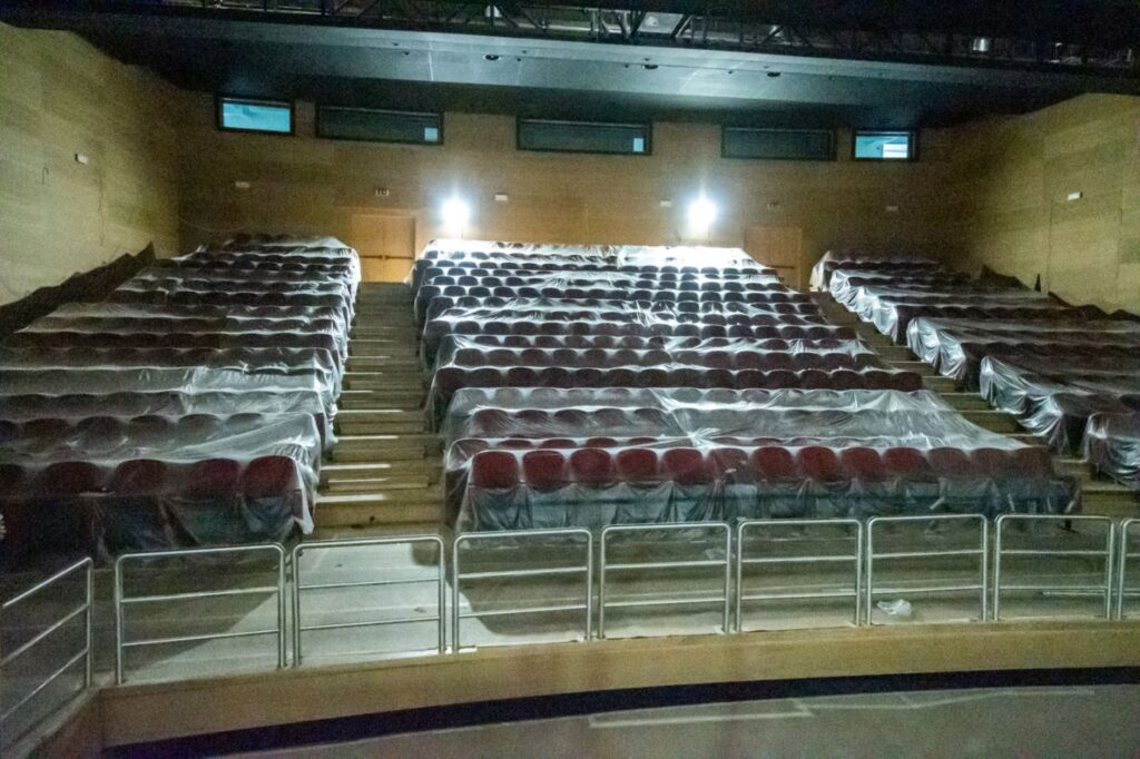 Παράλληλα, ήδη ολοκληρώθηκε η τοποθέτηση των 500 καθισμάτων στην αίθουσα θεατών, καθώς και όλες οι απαραίτητες εργασίες στον χώρο της σκηνής, με έμφαση στον μηχανολογικό εξοπλισμό. Εντός του μήνα αναμένεται και η τοποθέτηση των υφασμάτων της αυλαίας. Ταυτόχρονα, συνεχίζεται με ταχείς ρυθμούς η διαμόρφωση του αύλειου χώρου, όπου έχουν τοποθετηθεί διάτρητοι κυβόλιθοι και προγραμματίζεται σπορά γκαζόν.