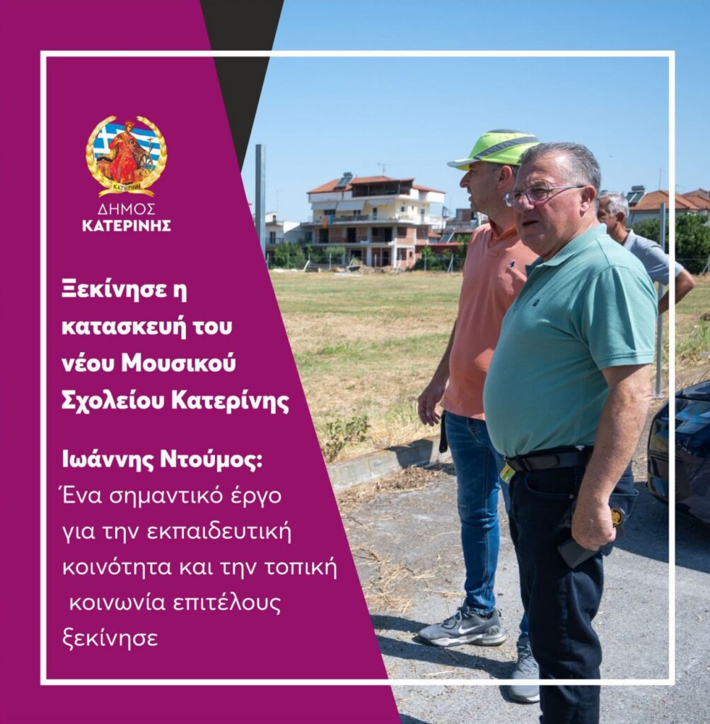Με την εγκατάσταση εργοταξίου και την έναρξη των πρώτων τεχνικών παρεμβάσεων (κατασκευή περίφραξης) ξεκίνησαν οι εργασίες για την κατασκευή του νέου Μουσικού Σχολείου Κατερίνης, έργο που υλοποιείται μέσω Σύμπραξης Δημόσιου και Ιδιωτικού Τομέα (ΣΔΙΤ).