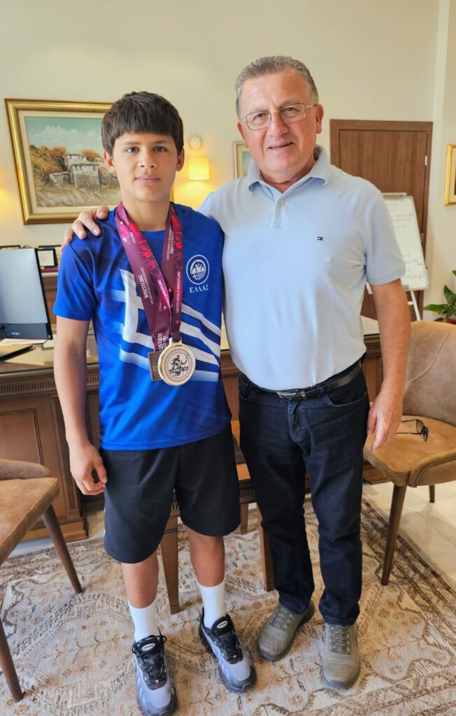 Τον νεαρό παλαιστή Νίκο Ζινίσα, αθλητή του Αρχέλαου Κατερίνης, ο οποίος κατέκτησε το χρυσό μετάλλιο στο Πανευρωπαϊκό Πρωτάθλημα Πάλης Παμπαίδων U15, που διεξήχθη πρόσφατα στην Ιταλία, υποδέχθηκε ο Δήμαρχος Κατερίνης, Ιωάννης Ντούμος, παρουσία και του αντιδημάρχου Παιδείας, Αθλητισμού & Δημοτικού Ωδείου, Γιώργου Κοκαβίδη.