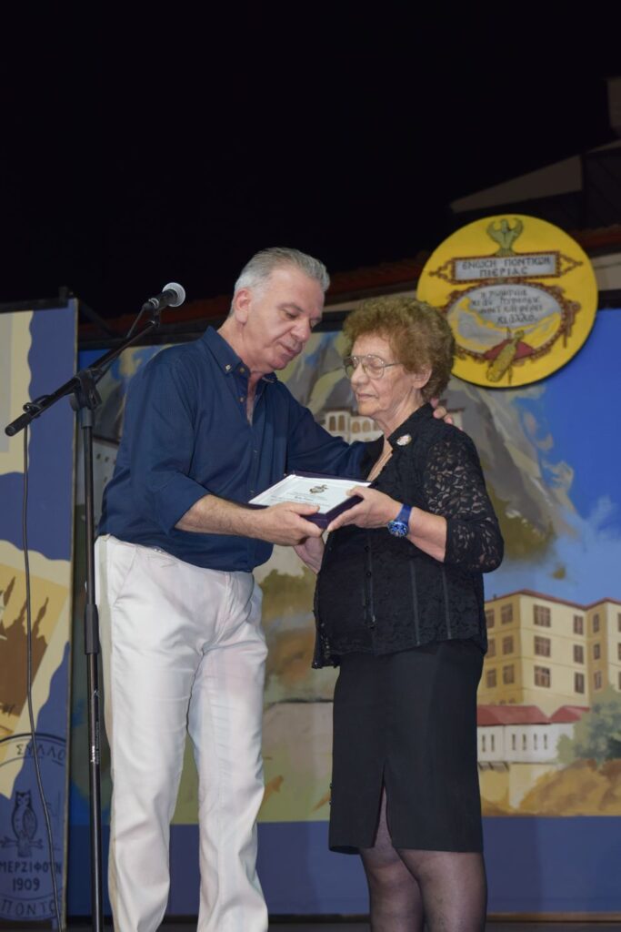 Το Σάββατο 26 Ιουλίου η Ένωση Ποντίων Πιερίας τίμησε για την πολύτιμη κοινωνική της προσφορά και την έμπρακτη αγάπη της για τους συνανθρώπους μας, την κα. Ειρήνη Παρασκευοπούλου η οποία δώρισε ένα καινούργιο ασθενοφόρο στα ΕΚΑΒ Πιερίας. Τον Σύλλογο Προστασίας Παιδιών ¨ΒΕΝΙΑΜΙΝ¨ για το ανεκτίμητο κοινωνικό έργο του στην προστασία και τη δημιουργία ενός καλύτερου κόσμου για τα παιδιά καθώς και τον Σύλλογο Καρκινοπαθών Κατερίνης-Πιερίας ¨Η ΑΓΙΑ ΑΙΚΑΤΕΡΙΝΗ¨ για την ουσιαστική του προσφορά στο κοινωνικό σύνολο και την αδιάλειπτη στήριξη των ανθρώπων που δοκιμάζονται.