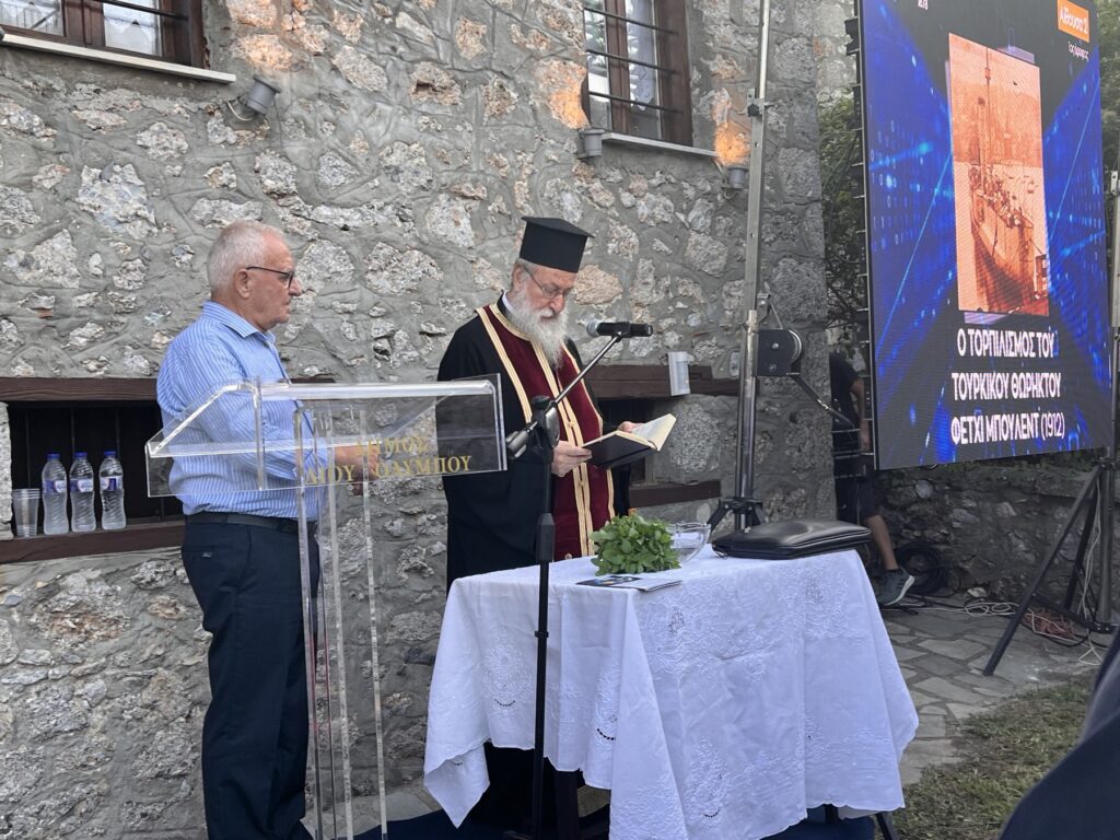 Κατά το χαιρετισμό του ο Δήμαρχος Δίου-Ολύμπου, Βαγγέλης Γερολιόλιος, σημείωσε ότι πρόκειται για τα εγκαίνια ένα έργου πολύ μεγάλης ηθικής σημασίας, ως χρέος απέναντι στη γενιά των πατέρων και παππούδων μας, αλλά και ως ένα χρέος απέναντι στην ιστορία μας. Ο Δήμαρχος υπογράμμισε ότι το Μουσείο αποτελεί ιστορική παρακαταθήκη για τους δημότες και τους επισκέπτες του Δήμου από Ελλάδα και εξωτερικό. Ενώ τόνισε ότι δίνεται πλέον η δυνατότητα στη νέα γενιά να διαβάσει την ιστορία της περιοχής, με τον δικό της τρόπο. Ευχαρίστησε επίσης το σύνολο των ατόμων που εργάστηκαν για την υλοποίηση αυτού του εγχειρήματος.