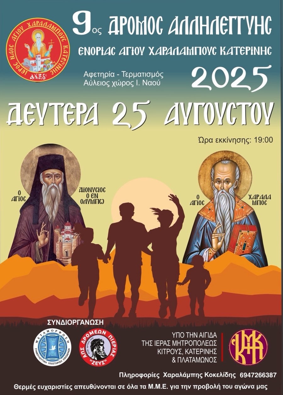 Ενορία Αγίου Χαραλάμπους: 9ος Δρόμος Αλληλεγγύης – Δευτέρα 25 Αυγούστου Κοινωνία 24 Αυγούστου 202524 Αυγούστου 2025Pieria Social