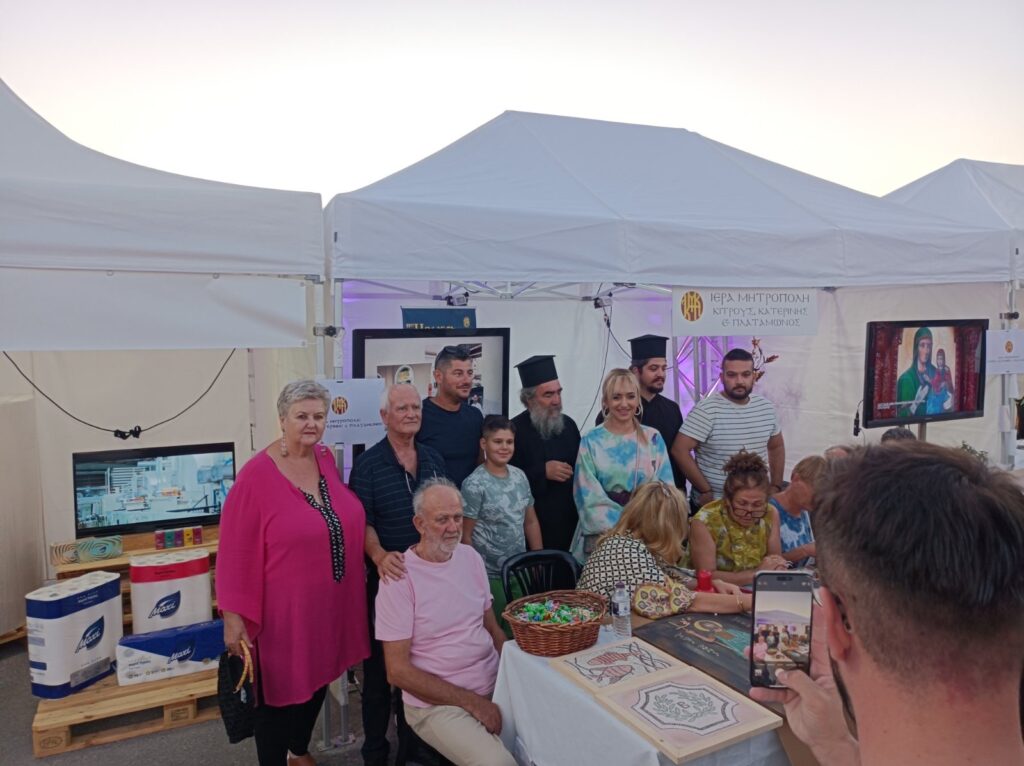 Η Ιερά Μητρόπολη Κίτρους, Κατερίνης και Πλαταμώνος, σε συνεργασία με το Κέντρο Γραμμάτων και Τεχνών Δίου και την υποστήριξη της Περιφερειακής Ενότητας Πιερίας, του Δήμου Κατερίνης και του Επιμελητηρίου Πιερίας διοργάνωσε ένα ξεχωριστό Εργαστήρι Ψηφιδωτού, την Τετάρτη 27 Αυγούστου, στο περίπτερο της Ιεράς Μητροπόλεως, στο πλαίσιο του Εμπορικού Φεστιβάλ Κατερίνης.