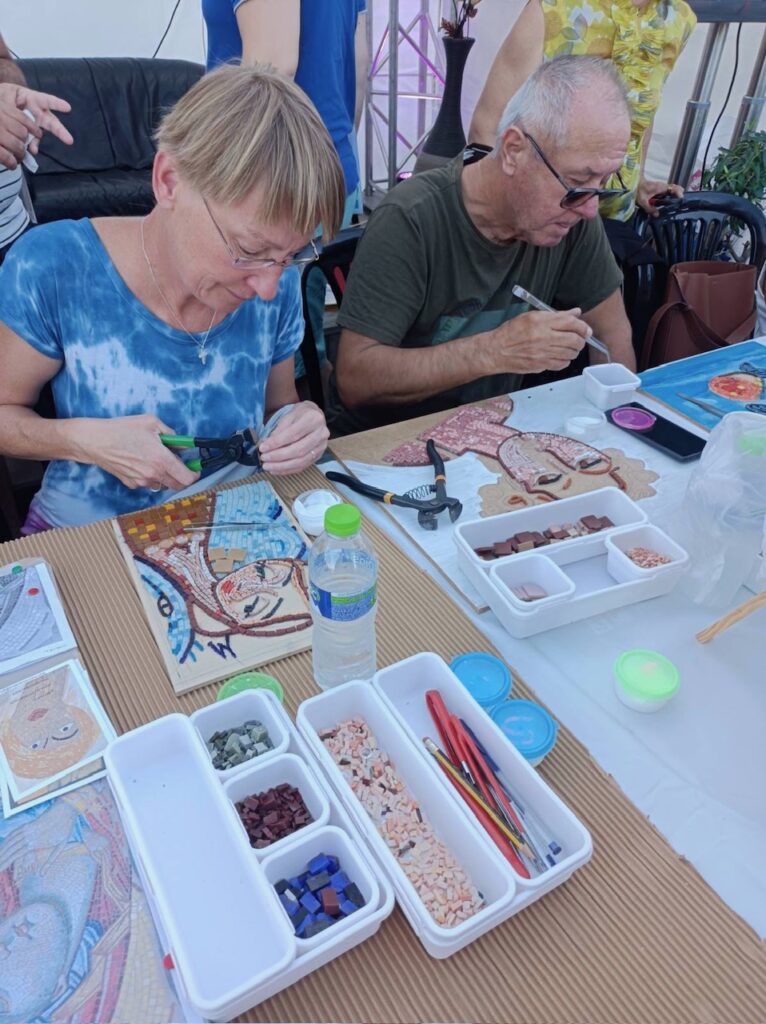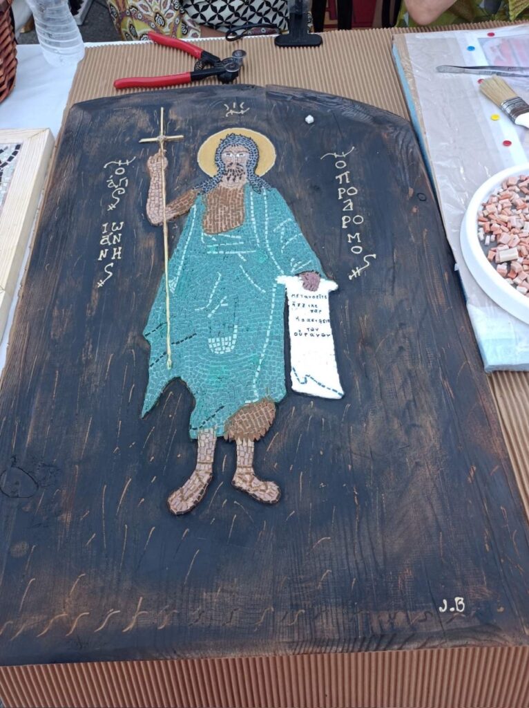 Το εργαστήρι απευθυνόταν σε μικρούς και μεγάλους και αποτέλεσε μια μοναδική ευκαιρία γνωριμίας με την τέχνη του ψηφιδωτού, η οποία έχει βαθιές ρίζες στην εκκλησιαστική και πολιτιστική παράδοση. Με την καθοδήγηση έμπειρων καλλιτεχνών και εκπαιδευτών του Κέντρου Γραμμάτων και Τεχνών Δίου , οι συμμετέχοντες είχαν τη δυνατότητα να ανακαλύψουν βήμα προς βήμα τα μυστικά αυτής της διαχρονικής τέχνης.