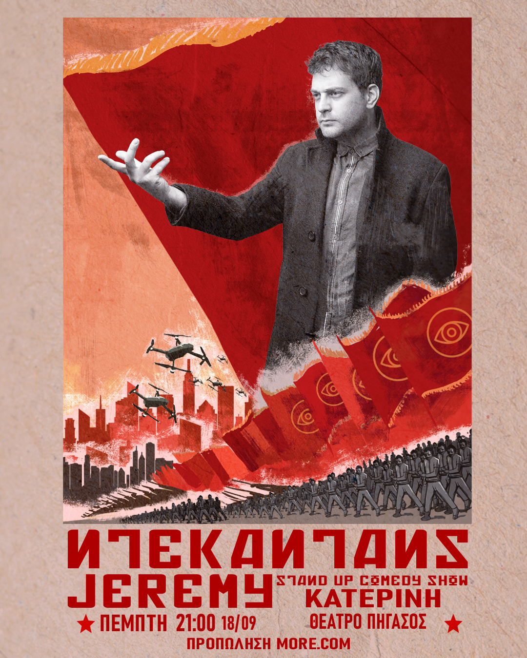 Μετά από αμέτρητες viral στιγμές, παραστάσεις σε όλη την Ελλάδα και τουλάχιστον 9 βραβεία στις Κάννες, ο Jeremy προσγειώνεται στη σκηνή με μια παράσταση γεμάτη ρυθμό, γέλιο και σκέψεις που μάλλον έχεις κάνει κι εσύ!