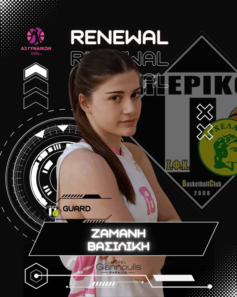 Παίκτρια του Πιερικού Αρχέλαου θα είναι και την προσεχή αγωνιστική περίοδο η Βασιλική Ζαμάνη.