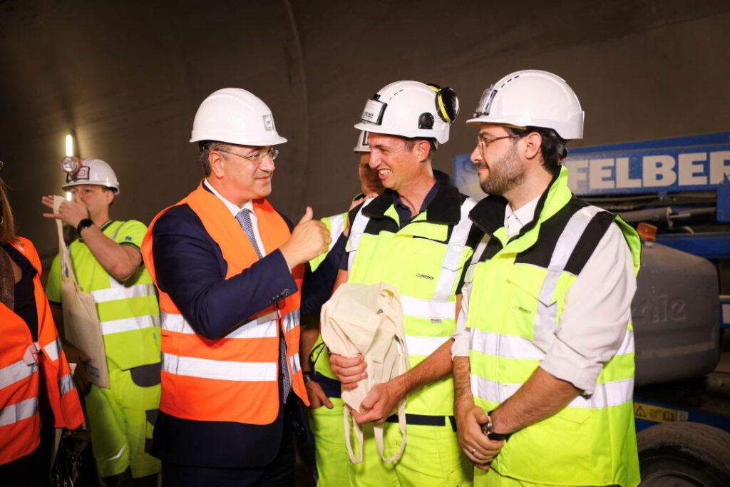 Μετά την τελετή της τελικής διάνοιξης της Σήραγγας, ο Επίτροπος με τον Καγκελάριο, μετέβησαν στο τούνελ, στο σημείο της διάνοιξης και συνομίλησαν με τους μηχανικούς και τους εργαζόμενους, οι οποίοι τους ενημέρωσαν για την πορεία των εργασιών.