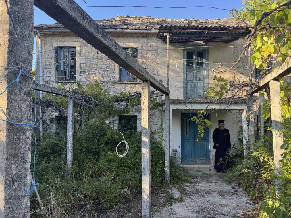Τον Σεβασμιώτατο κ. Γεώργιο, οδήγησε στην εγκαταλελειμμένη πλέον πατρική οικία του Αγίου Γερασίμου του Υμνογράφου ο Δημοσθένης Αγόρας, ο οποίος φυλάσσει το κλειδί της.