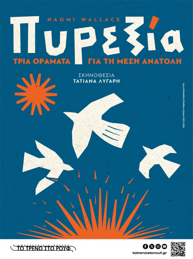 Γραμμένο το 2008, το θεατρικό έργο «Πυρεξία – Τρία οράματα για τη Μέση Ανατολή» της βραβευμένης Αμερικανίδας συγγραφέα και ποιήτριας Naomi Wallace, είναι ένα συναρπαστικό τρίπτυχο ιστοριών-οραμάτων, που βασίζεται σε πραγματικά γεγονότα και εξερευνά τα πανανθρώπινα θέματα της αγάπης, της απώλειας και του θανάτου μέσα σε ακραίες συνθήκες.