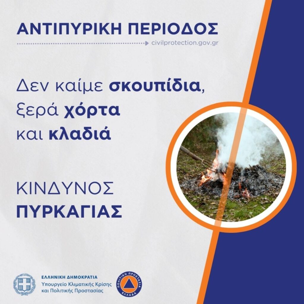 * Να μην καίνε σκουπίδια, ξερά χόρτα και κλαδιά στην ύπαιθρο ή σε ιδιωτικά οικόπεδα – Κίνδυνος πυρκαγιάς.