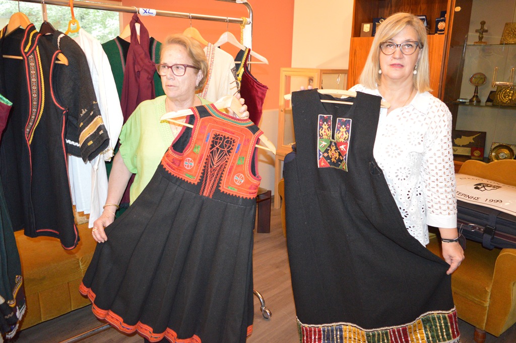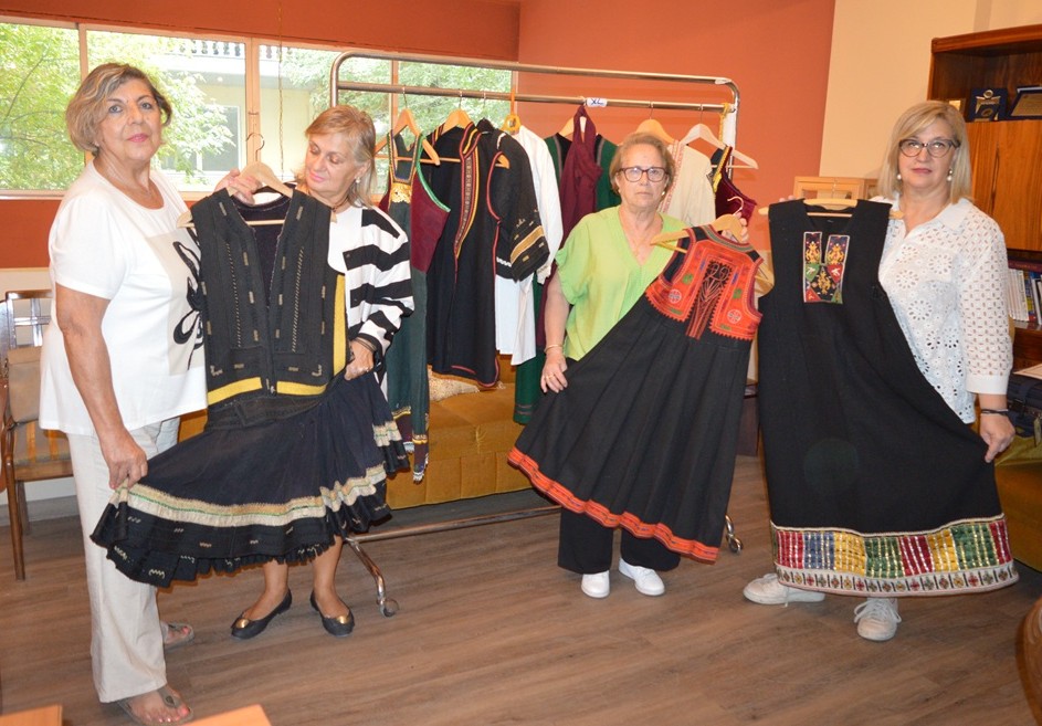 Τα διοικητικά μέλη του Λυκείου των Ελληνίδων Κατερίνης στη φωτογραφία κρατούν τις φορεσιές. Η πρόεδρος Πολυτίμη Σταματοπούλου (Θράκης), η αντιπρόεδρος β΄ και έφορος ιματισμού Ελένη Τσούρη (σεγκούνι- μάλλινο πανωφόρι), ενώ το δίδυμο Μυράντα Παππά, έφορος τύπου-δημοσίων σχέσεων και Ελένη Τσιρέκα-Λάμπρου, έφορος καλλιτεχνικού, τη φορεσιά της καραγκούνας-Θεσσαλία.