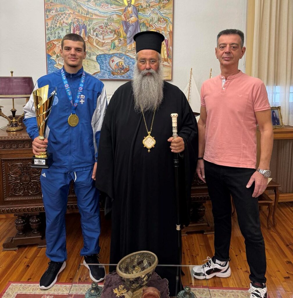 Τον Σεβασμιώτατο Μητροπολίτη Κίτρους κ. Γεώργιο επισκέφθηκε ο Πρωταθλητής Ευρώπης στο Kickboxing, Σωτήρης – Αλέξανδρος Σγουρίδης. Η συνάντηση πραγματοποιήθηκε στο Μητροπολιτικό Μέγαρο Κατερίνης, το απόγευμα της Παρασκευής 26 Σεπτεμβρίου 2025, παρουσία του πατέρα του Απόστολου Σγουρίδη.