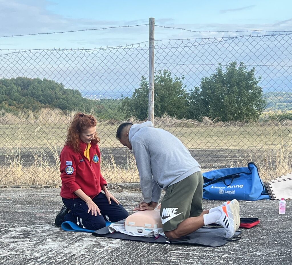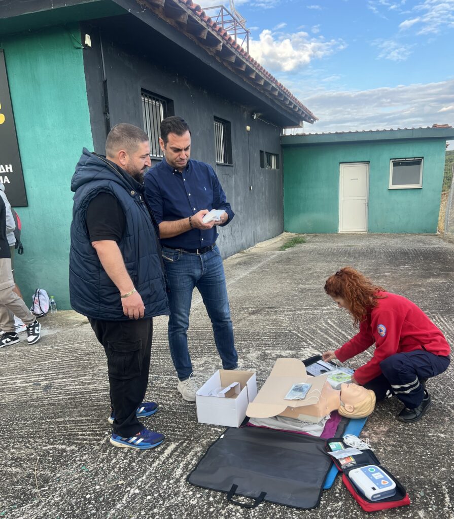 Στη διάρκεια της παράδοσης του απινιδωτή πραγματοποιήθηκε εκπαίδευση πρώτων βοηθειών και χρήσης του απινιδωτή στους ποδοσφαιριστές από την διασώστρια της Διασωστικής Ομάδας Πιερίας Αθηνά Γεραρίδου.