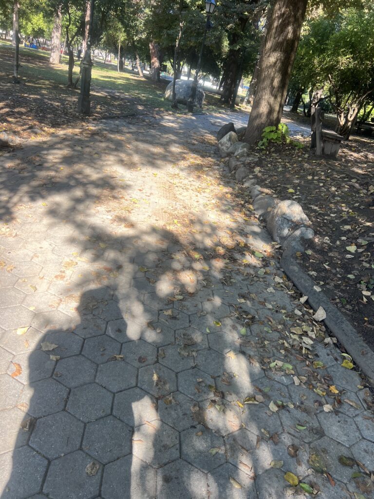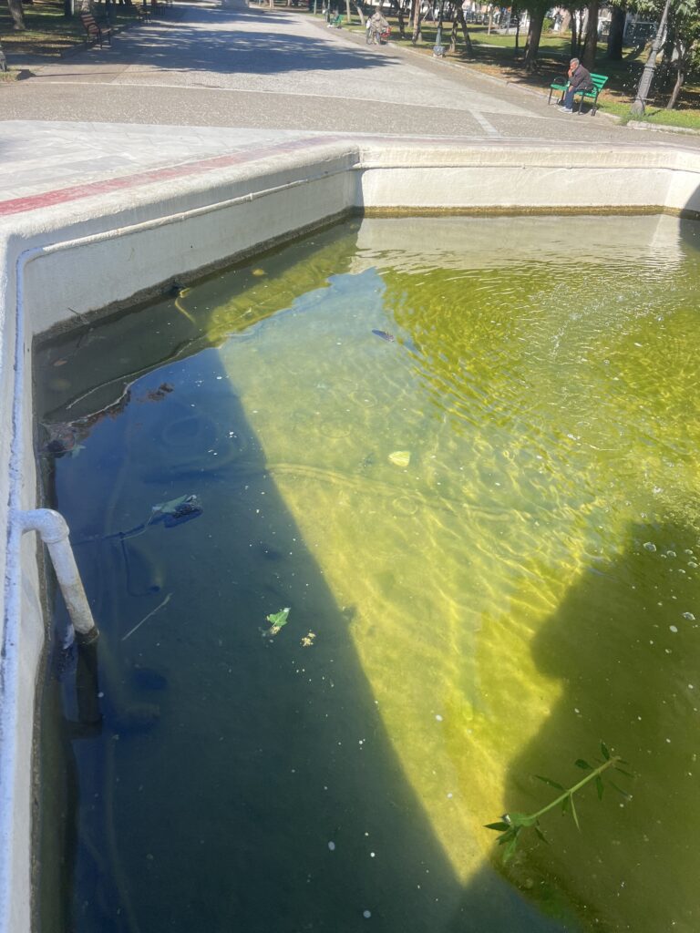 Λίγες μέρες πριν τα Χριστούγεννα, το πάρκο της πόλης θυμίζει περισσότερο εγκαταλελειμμένο βάλτο παρά σημείο γιορτής. Τα συντριβάνια γεμάτα γλίτσα και λειχήνες, τα στάσιμα νερά και η έντονη δυσοσμία υποδέχονται όποιον τολμήσει να περάσει.