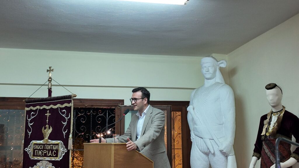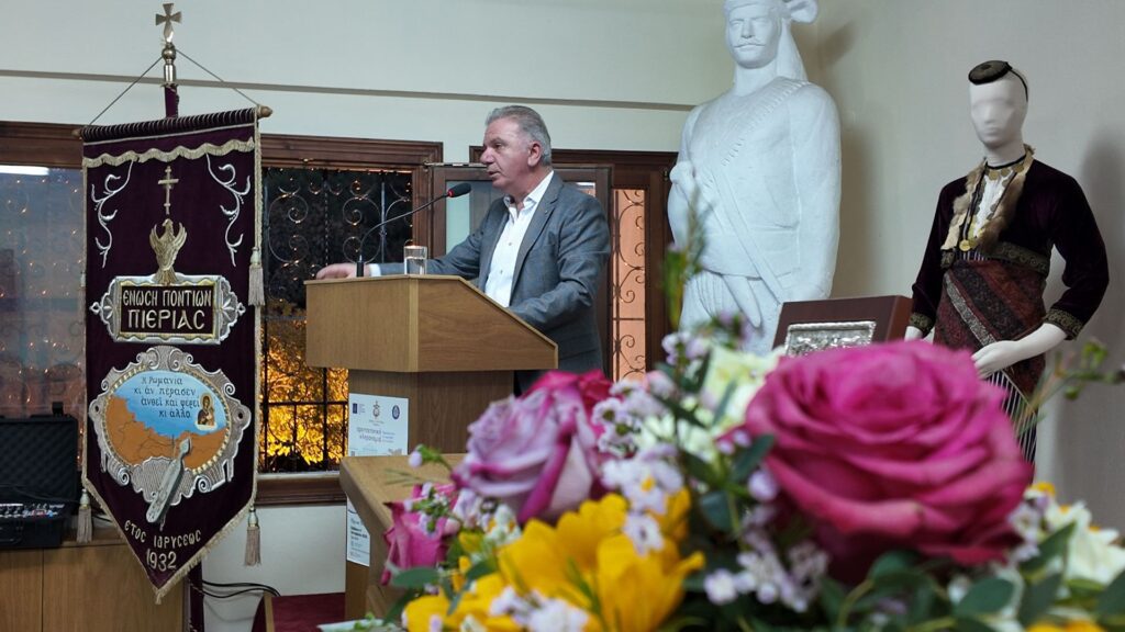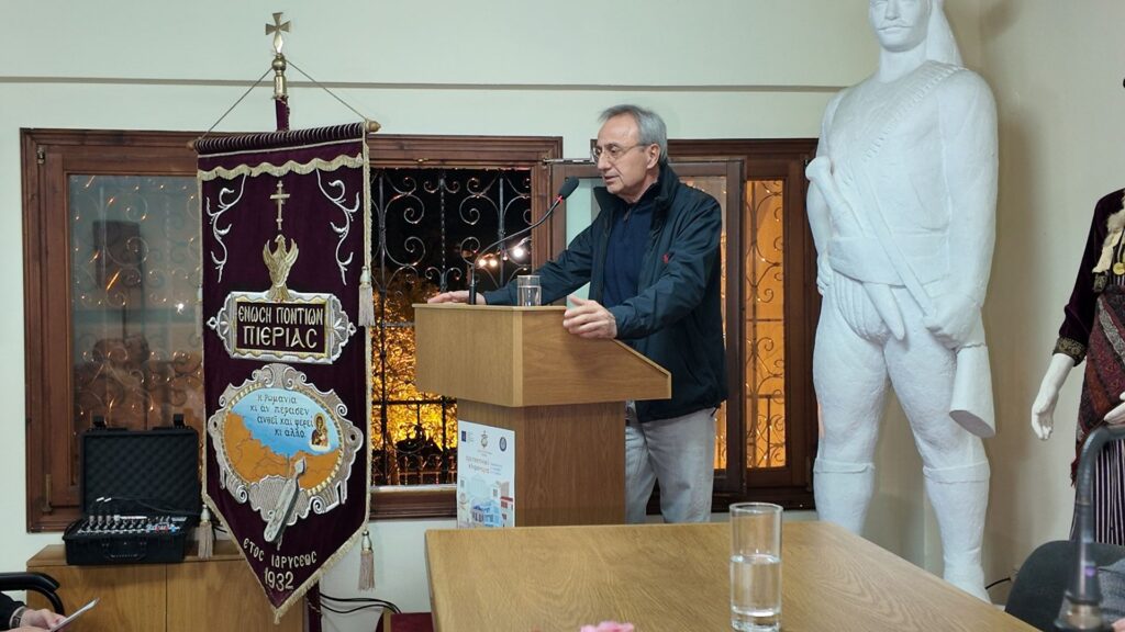 Στη συνέχεια, ο Πρόεδρος προχώρησε στην εισήγηση της Ημερίδας, με τίτλο «Εδώ η Μνήμη έχει Στέγη: Το Μουσείο ως Αιώνια Υπόσχεση της Ποντιακής Πολιτιστικής Κληρονομιάς. Στόχοι, επιδιώξεις και το όραμα για το νέο Μουσείο Ποντίων Κατερίνης-Πιερίας», όπου μεταξύ άλλων ανέφερε: