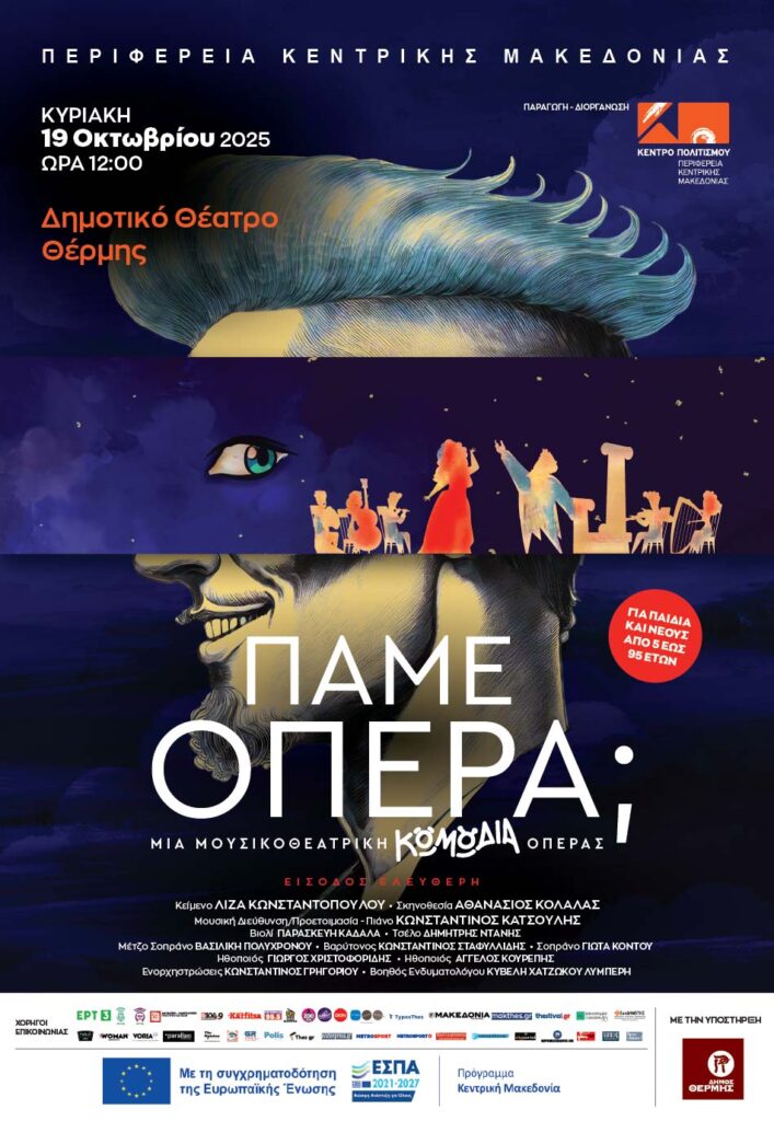 Το Κέντρο Πολιτισμού Περιφέρειας Κεντρικής Μακεδονίας προσκαλεί το κοινό σε ένα διαφορετικό ταξίδι στον μαγικό κόσμο της όπερας, μέσα από την μουσικοθεατρική κωμωδία-έκπληξη «Πάμε… Όπερα;;».