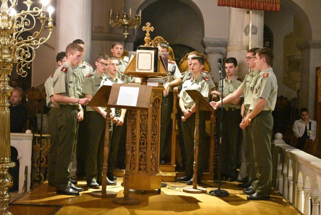 Κατά τον Όρθρο και τη Θ. Λειτουργία έψαλαν: α) η Χορωδία των σπουδαστών της Στρατιωτικής Σχολής Αξιωματικών Σωμάτων (Σ.Σ.Α.Σ.) και β) ο Βυζαντινός Χορός φοιτητριών «Αγία Ανυσία» της Ελληνικής Ένωσης για τη Μουσική Εκπαίδευση (Ε.Ε.Μ.Ε.), υπό τη διεύθυνση της κας Μαρίας Αλεξάνδρου, Καθηγήτριας του Τμήματος Μουσικών Σπουδών του Α.Π.Θ.