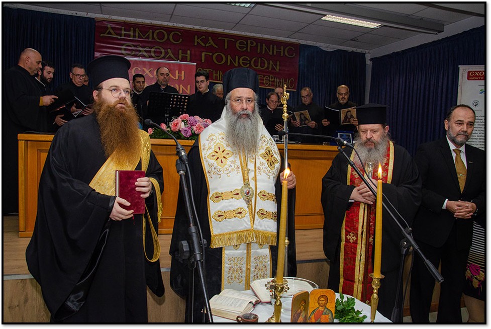 Στην έναρξη της εκδήλωσης τελέστηκε ο καθιερωμένος ετήσιος Αγιασμός από τον Μητροπολίτη Κίτρους & Κατερίνης κ.κ. Γεώργιο ενώ έψαλλε η χορωδία του Συλλόγου Ιεροψαλτών Ν. Πιερίας «Ο Όσιος Διονύσιος ο έν Ολύμπω» τον οποίο θερμά ευχαριστούμε.