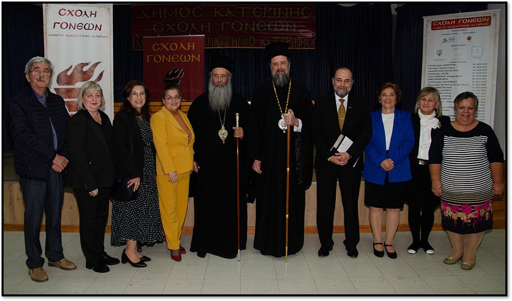 Την εκδήλωση τίμησαν με την παρουσία τους η πρ. Υφυπουργός . βουλευτής της Ν.Δ. κ. Άννα Μάνη, η Αντιπεριφερειάρχης Πιερίας κ. Σοφία Μαυρίδου, ο Δήμαρχος Κατερίνης κ. Ιωάννης Ντούμος, οι εκπρόσωποι των Βουλευτών της Ν.Δ. κ. Φώντα Μπαραλιάκου & Σπύρου Κουλκουδίνα, ο Αντιδήμαρχος Δήμου Δίου – Ολύμπου κ. Αθανάσιος Καλαϊτζής, ο Διευθυντής της Δευτεροβάθμιας Εκπαίδευσης Πιερίας κ. Γεώργιος Μακρής, η Διευθύντρια της Πρωτοβάθμιας Εκπαίδευσης Πιερίας κ. Νόπη Τριανταφυλλίδου, ο Πρόεδρος του Δημοτικού Συμβουλίου Κατερίνης κ. Χ. Μπρουσκέλης, ο Αντιδήμαρχος Οικονομικών Υπηρεσιών κ. Ανέστης Μυστρίδης, ο Αντιδήμαρχος Καθαριότητος Κατερίνης κ. Ηλίας Τάπρας, οι περιφερειακές σύμβουλοι κ. Χρυσαυγή Δριστά, και Άννα Τζήκα και πλήθος κόσμου. Η εκδήλωση πραγματοποιήθηκε σε Συνδιοργάνωση με την Ιερά Μητρόπολη Κίτρους, Κατερίνης & Πλαταμώνος.
