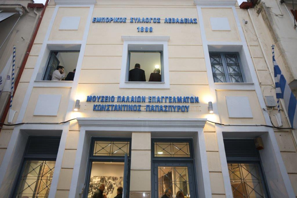 Σε ιδιαίτερα συγκινητικό και ταυτόχρονα θεσμικό κλίμα πραγματοποιήθηκε τη Δευτέρα 20 Οκτωβρίου στη Λιβαδειά η εκδήλωση ονοματοδοσίας του Μουσείου Παλαιών Επαγγελμάτων “Κ. Παπασπύρου”, που πραγματοποιήθηκε υπό την αιγίδα της Ελληνικής Συνομοσπονδίας Εμπορίου και Επιχειρηματικότητας και με οργανωτή τον Εμπορικό Σύλλογο Λιβαδειάς. Η εκδήλωση πραγματοποιήθηκε στο κτίριο όπου συστεγάζεται το Κέντρο Ανάπτυξης Ελληνικού Εμπορίου (Κ.Α.ΕΛ.Ε) Λειβαδιάς της ΕΣΕΕ με τον Εμπορικό Σύλλογο και πλαισιώθηκε από τη συνεδρίαση του Διοικητικού Συμβουλίου της ΕΣΕΕ, επιβεβαιώνοντας τη στενή συνεργασία του ανώτατου θεσμικού οργάνου του ελληνικού εμπορίου με τους τοπικούς εμπορικούς συλλόγους.