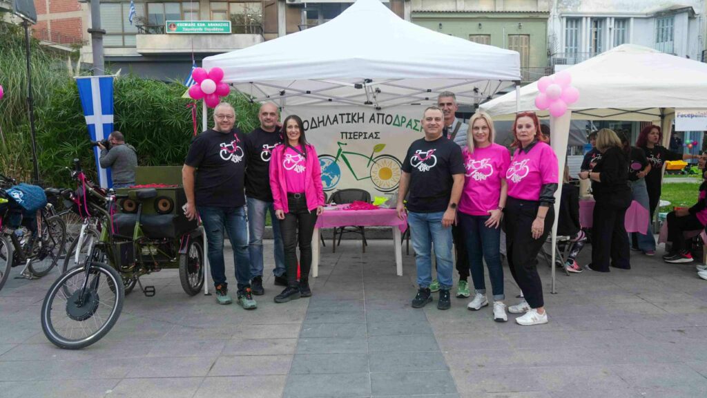 Με ιδιαίτερη επιτυχία πραγματοποιήθηκε την Τετάρτη 15 Οκτωβρίου 2025 στην Πλατεία Ελευθερίας Κατερίνης το «5ο BIKE FOR LIFE – ΠΟΔΗΛΑΤΟΥΜΕ ΓΙΑ ΤΗ ΖΩΗ». Η εκδήλωση-θεσμός για την πόλη μας, αποτέλεσε την κορύφωση της πολυήμερης εκστρατείας ενημέρωσης και ευαισθητοποίησης για τον καρκίνο του μαστού που διοργανώθηκε από το Σύλλογο Καρκινοπαθών Πιερίας, την Ιερά Μητρόπολη Κίτρους Κατερίνης & Πλαταμώνος, την Περιφερειακή Ενότητα Πιερίας και τον Δήμο Κατερίνης σε συνεργασία με την Ποδηλατική Απόδραση Κατερίνης. Την δράση τίμησαν με την παρουσία τους η Αντιδήμαρχος Πολιτισμού και Τουρισμού κα Ελίνα Διαμαντοπούλου, ο Αντιδήμαρχος Προσχολικής Αγωγής και Δημιουργικής Απασχόλησης κ. Μιχαήλ Γεωργιάδης, καθώς και οι εκπρόσωποι των βουλευτών κ. Φώντα Μπαραλιάκου η κα. Μελίνα Κορομηλή, κας Άννας Μάνη – Παπαδημητρίου η κα Αθηνά Ψαριάη, κ. Σπύρου Κουλκουδίνα ο κ. Χαράλαμπος Μπρουσκέλης, Δήμου Δίου Ολύμπου η κα Κατσαμάκα Ουρανία και Επισκεπτριών Υγείας του Κέντρου Υγείας Κατερίνης κα Τοπάλη Δέσποινα.