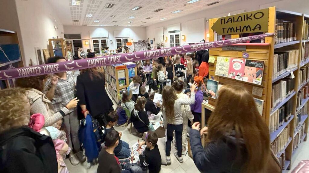 Η Δημοτική Βιβλιοθήκη Κατερίνης, και όλες οι αίθουσες του Α’ ορόφου του Πνευματικού Κέντρου γέμισαν ασφυκτικά το βράδυ της περασμένης Δευτέρας, με παιδικά χαμόγελα. Σε κλίμα μυστηρίου και ατελείωτης περιπέτειας, με φόντο κίτρινες κολοκύθες, «μάγισσες», γιρλάντες, το Halloween στάθηκε μόνο η αφορμή, ώστε η Δημοτική Βιβλιοθήκη να φιλοξενήσει μία μαραθώνια φθινοπωρινή γιορτή, συγκεντρώνοντας περισσότερα από 200 παιδιά.