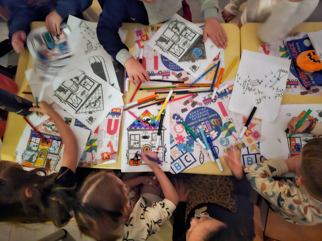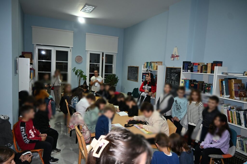 Οι μικροί φίλοι συμμετείχαν ενεργά σε παιχνίδια, δραστηριότητες δημιουργικής έκφρασης και αφηγήσεις με θεματολογία εμπνευσμένη από τη βραδιά. Παράλληλα, έγιναν πρωταγωνιστές ιστοριών, πειραματίστηκαν με χρώματα και υλικά και ανέδειξαν τη φαντασία τους μέσα από έργα ζωγραφικής και χειροτεχνίας. Η βραδιά, μετατράπηκε σε αφορμή για να έρθει στο επίκεντρο το βιβλίο, η αφήγηση και η φιλαναγνωσία και να γίνουν πιο ελκυστικά για τα παιδιά.