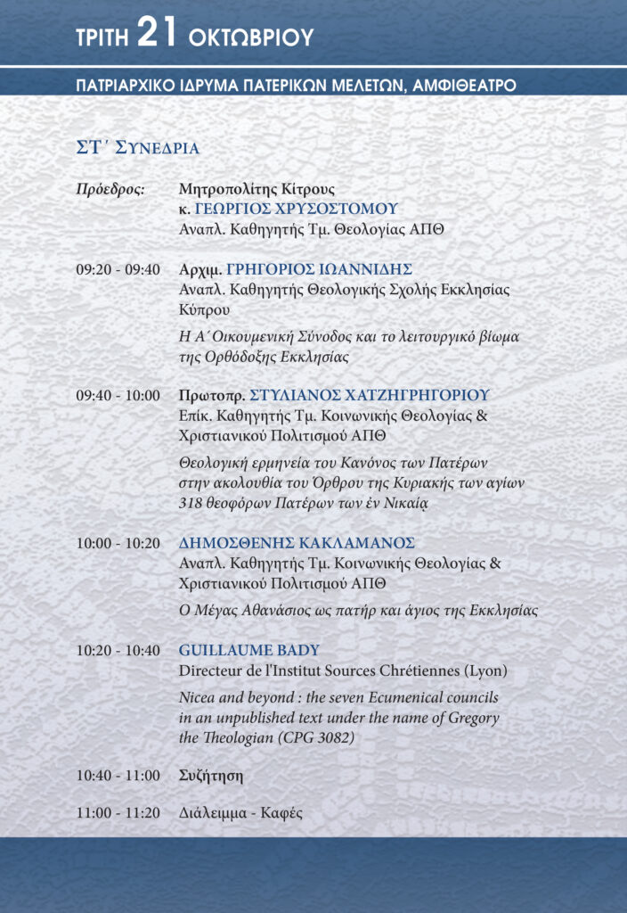 Από 19 Οκτωβρίου έως 21 Οκτωβρίου πραγματοποιήθηκε στη Θεσσαλονίκη Διεθνές Επιστημονικό Συνέδριο με τίτλο: «Η Α´ Οικουμενική Σύνοδος και το μήνυμά της στον σύγχρονο κόσμο»