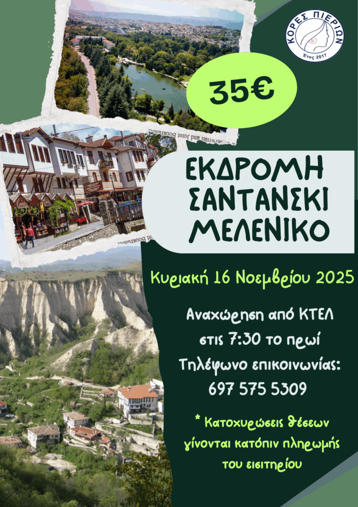 Οι Κόρες Πιερίων σάς πηγαίνουν εκδρομή στο Σαντάνσκι και το Μελένικο την Κυριακή 16 Νοεμβρίου 2025!