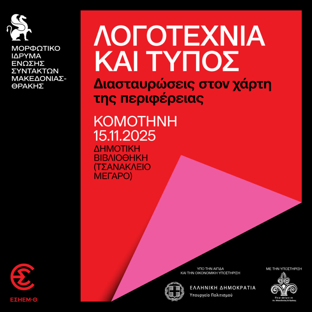 Η Κομοτηνή είναι ο επόμενος σταθμός του έργου «Λογοτεχνία και Τύπος: Διασταυρώσεις στον Χάρτη της Περιφέρειας» που διοργανώνειτο Μορφωτικό Ίδρυμα της ΕΣΗΕΜ-Θ, στο πλαίσιο του προγράμματος του Υπουργείου Πολιτισμού «Δημιουργική Ελλάδα».