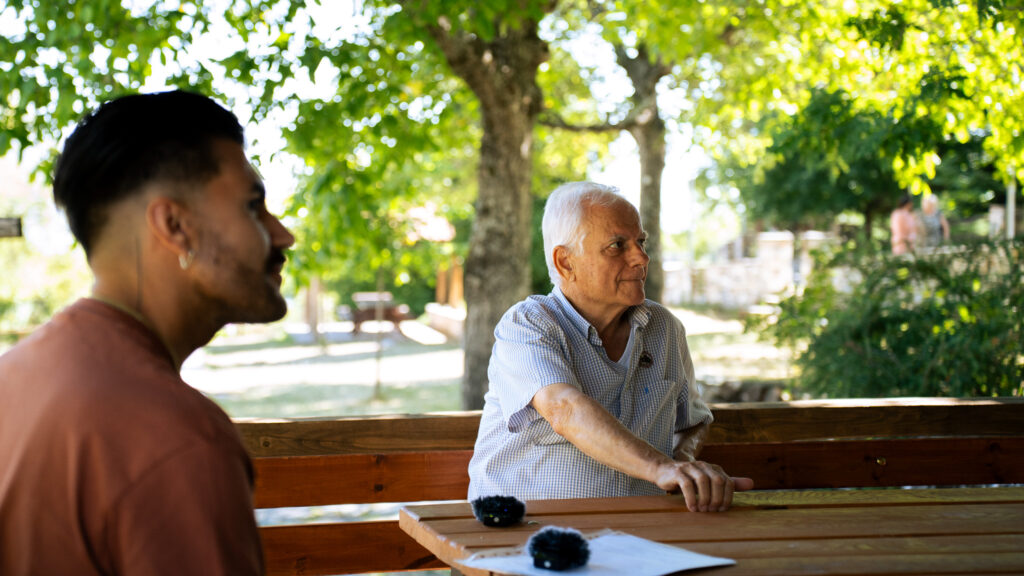 τον Γιάννη Πούλιο, που μεταφέρει τις ιστορίες και τις μνήμες της Μηλιάς και τον Γιώργο Πουλιάκη, στον αμπελώνα του οποίου η γη, το κρασί και η μνήμη γίνονται ένα.