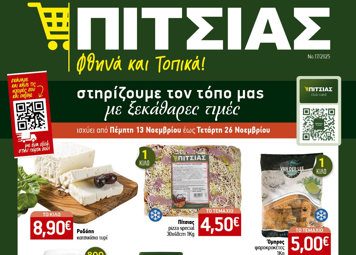 ΠΙΤΣΙΑΣ ΜΑΡΚΕΤ: Νέο φυλλάδιο με φθινοπωρινές τιμές από 13/11 έως 26/11 Γεύσεις Κοινωνία 12 Νοεμβρίου 2025Pieria Social Νέο φυλλάδιο με φθινοπωρινές τιμές ΠΙΤΣΙΑΣ ΜΑΡΚΕΤ!