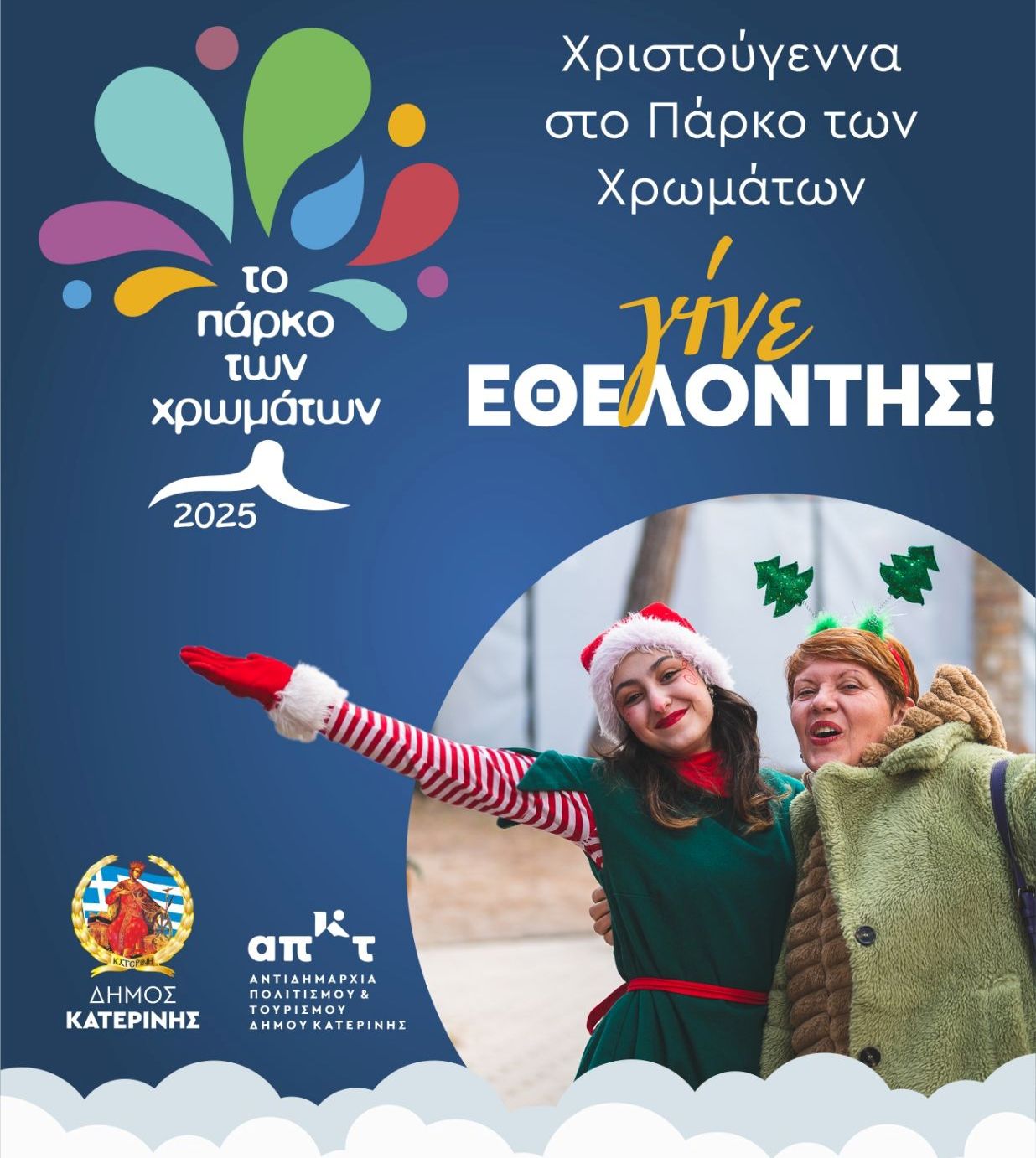 Το Χριστουγεννιάτικο θεματικό Πάρκο των Χρωμάτων του Δήμου Κατερίνης, σε προσκαλεί να γίνεις δημιουργικό μέλος της ομάδας του.