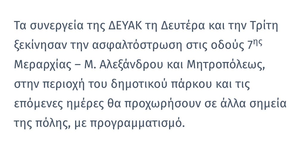 Στην Κατερίνη, το 2025, φαίνεται πως το ημερολόγιο εξακολουθεί να κινείται ανεξάρτητα από τη λογική και τον στοιχειώδη προγραμματισμό. Τον Ιούνιο, η ΔΕΥΑΚ, υπό την προεδρία του κ. Οφείδη, φρόντισε να ανακοινώσει με «φαντασμαγορικό» δελτίο Τύπου ότι στρώνει νέες ασφαλτοστρώσεις – πληρωμένες από τα χρήματα όλων μας.