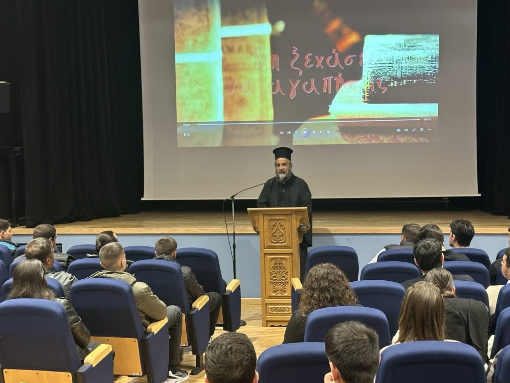 Μετά την ομιλία ακολούθησε σχετική προβολή και διάλογος με το νεανικό ακροατήριο.