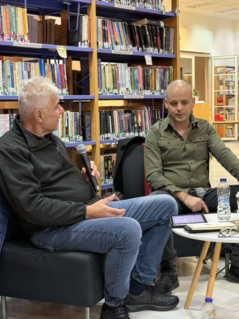 Στη συνέχεια, ο λογοτέχνης, Κωνσταντίνος Δομηνίκ, συνομιλώντας με τον Αντώνη Κάλφα, παρουσίασε πτυχές από τη ζωή του και από τη λογοτεχνική του δραστηριότητα, διάβασε χαρακτηριστικά αποσπάσματα κειμένων που έχουν δημοσιευτεί σε βιβλία του ενώ ακολούθησε και συζήτηση με δημότες αλλά και υπογραφή των βιβλίων του.