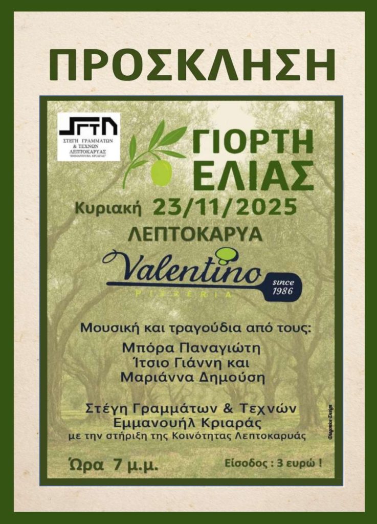 Η “Γιορτή της Ελιάς” από τη Στέγη Γραμμάτων & Τεχνών Λεπτοκαρυάς Κοινωνία 17 Νοεμβρίου 202517 Νοεμβρίου 2025Pieria Social