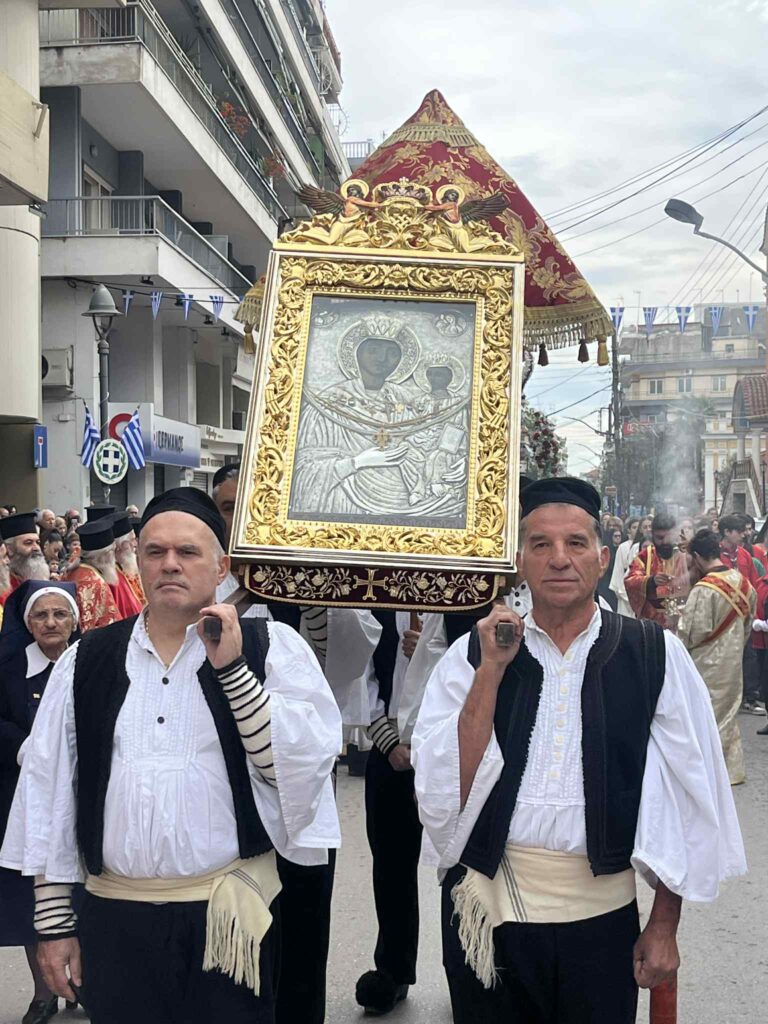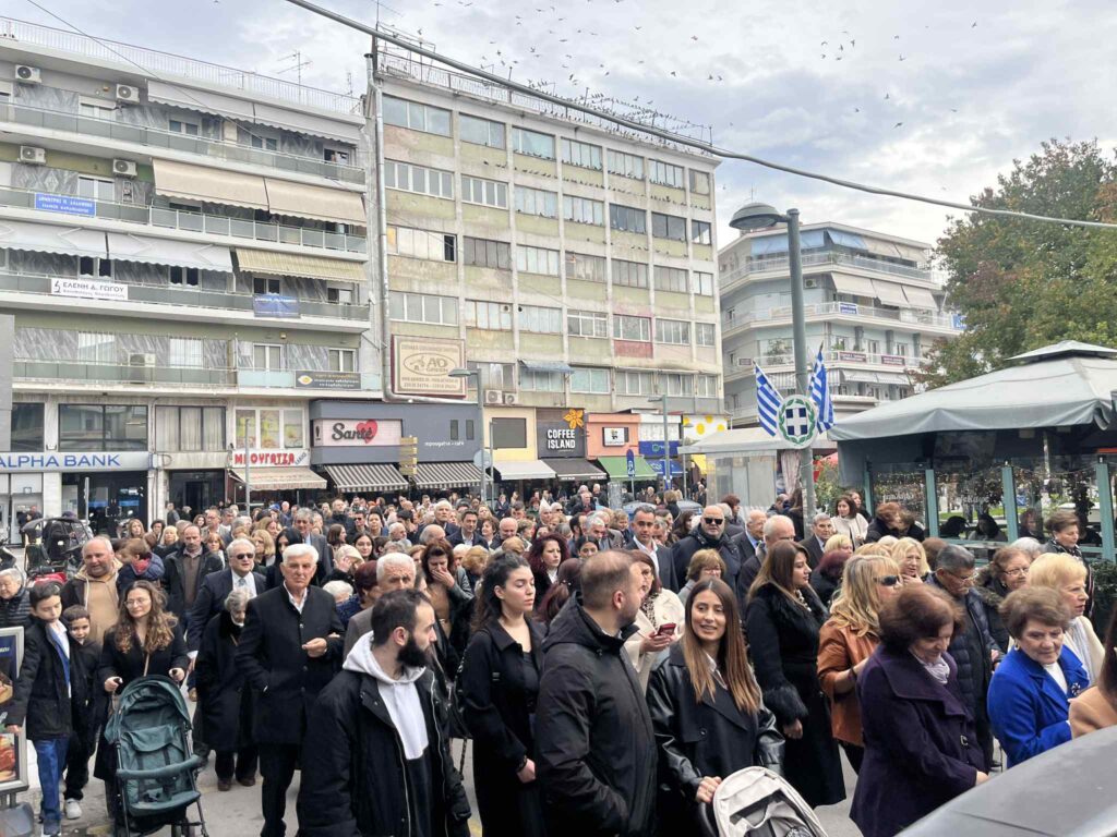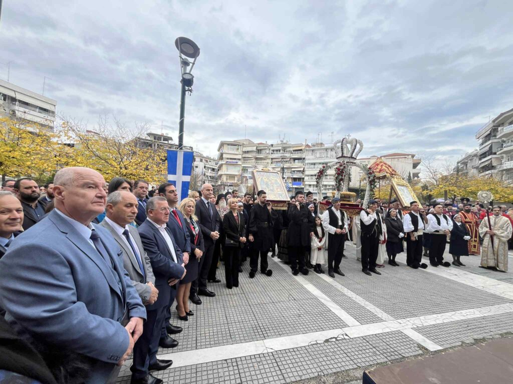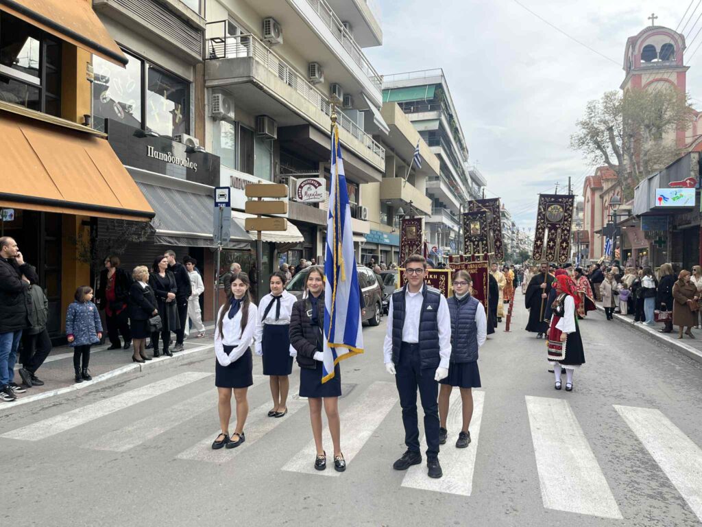 Την πομπή συνόδευαν εκπρόσωποι του Κλήρου, του Στρατού, των Σωμάτων Ασφαλείας, των τοπικών Αρχών και συλλόγων, μαθητές σημαιοφόροι, καθώς και πιστοί κάθε ηλικίας.