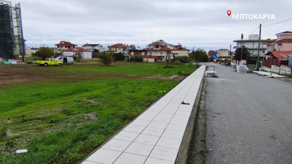 Το έργο αφορά στην κατασκευή πεζοδρομίων στη Λεπτοκαρυά εμβαδού 3.500 τ.μ. και στο Λιτόχωρο εμβαδού 5.000 τ.μ., συνολικού προϋπολογισμού 350.000 ευρώ, με χρηματοδότηση από το Ταμείο Ανάκαμψης.