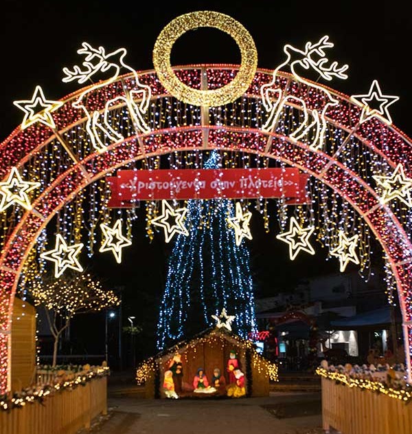 Ένα παραμυθένιο σκηνικό, με το στολισμένο Δέντρο, περιμένει μικρούς και μεγάλους στην χριστουγεννιάτικη πλατεία με παγοπίστα, λαμπιόνια από lazer-προτζέκτορες, τρεχούμενες γιρλάντες, ξύλινα σπιτάκια, φάτνη, ξωτικά, ελαφάκια, το σπίτι και το ταχυδρομείο του Άι Βασίλη, Bubble Show, εργαστήρια ζαχαροπλαστικής, face painting, κ.α. ενώ μουσικές στο πνεύμα των Χριστουγέννων θα πλημυρίζουν το χώρο!