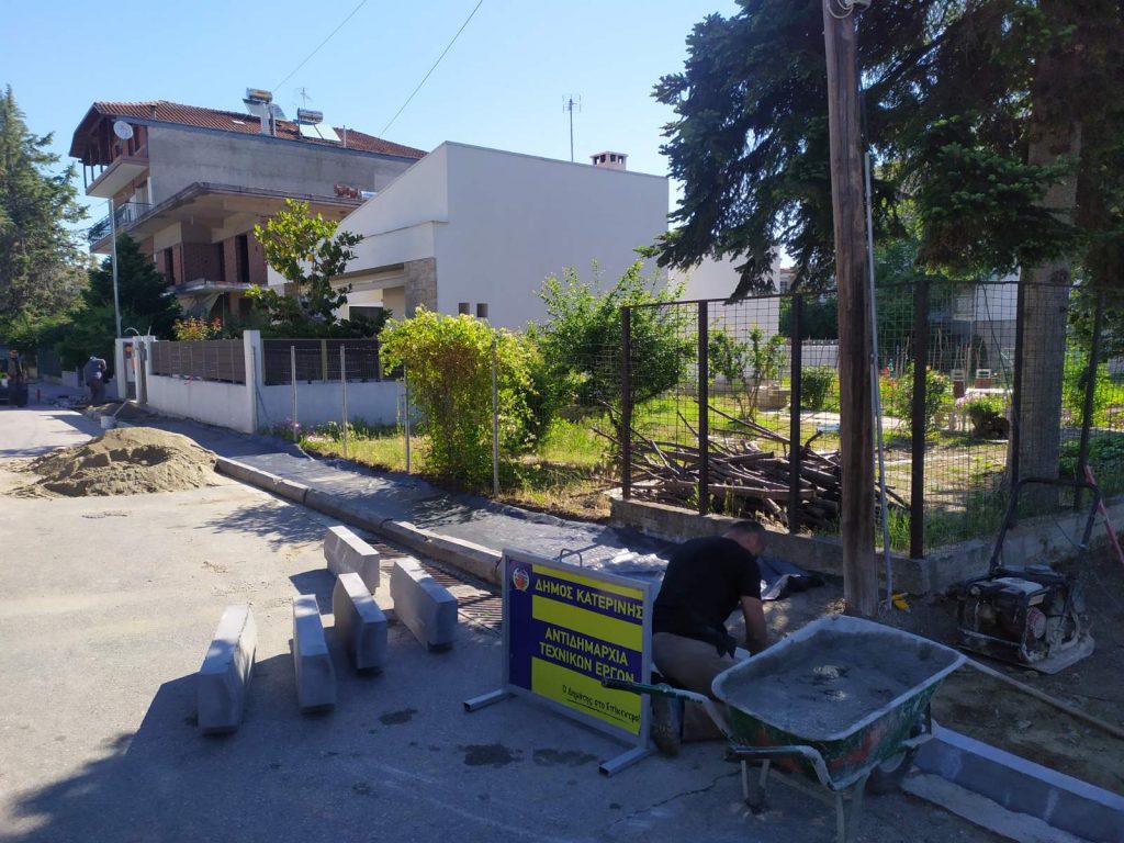 Η διευκόλυνση της προσβασιμότητας των μαθητών και των εκπαιδευτικών στο σχολικό κτίριο του 5ου Δημοτικού Σχολείου Κατερίνης, η αύξηση της ασφάλειας και η βελτίωση της λειτουργικότητας της ευρύτερης περιοχής επιτυγχάνεται μέσα από την κατασκευή – διαπλάτυνση πεζοδρομίων και επίστρωση με κυβόλιθους του βασικού οδικού άξονα περιμετρικά του σχολικού συγκροτήματος.