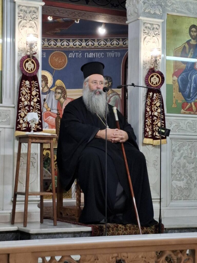 Ο Σεβασμιώτατος παρουσίασε τη μορφή του Αγίου Γερασίμου με θεολογική σαφήνεια, αναδεικνύοντας την ασκητική του πορεία, την προσήλωσή του στην προσευχή και το εξαιρετικής αξίας υμνογραφικό του έργο. Ιδιαίτερη έμφαση έδωσε στη σημασία της ζωής και της διδασκαλίας του Αγίου ως πνευματικού οδηγού για τον σύγχρονο άνθρωπο.