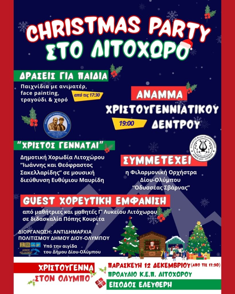 Η Δημοτική Χορωδία Λιτοχώρου “Ιωάννης και Θεόφραστος Σακελλαρίδης” σε μουσική διεύθυνση Ευθύμη Μαυρίδη θα παρουσιάσει το έργο «Χριστός Γεννάται», ενώ μαθήτριες και μαθητές της Γ’ τάξης του Γενικού Λυκείου Λιτοχώρου θα συμμετέχουν σε guest χορευτική εμφάνιση και διδασκαλία Πόπης Κουρίτα.