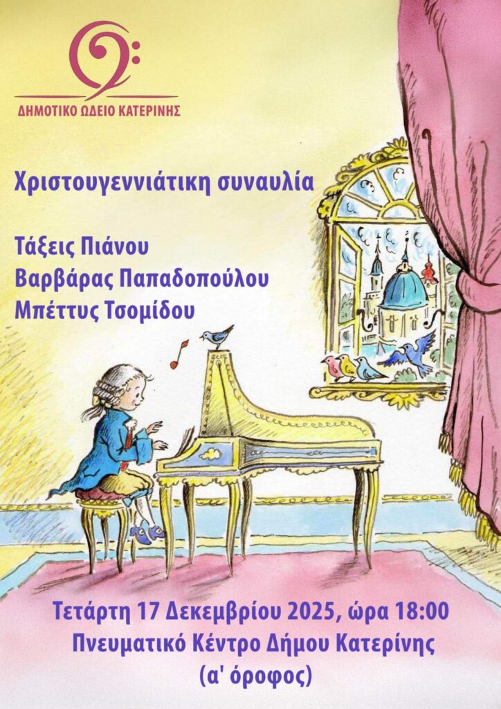Δημοτικό Ωδείο Κατερίνης: Χριστουγεννιάτικη συναυλία Τάξεων Πιάνου Βαρβάρας Παπαδοπούλου & Μπέτυς Τσομίδου – Τετάρτη 17/12 & ώρα 18:00 στο Πνευματικό Κέντρο Δ. Κατερίνης (α’όροφος)