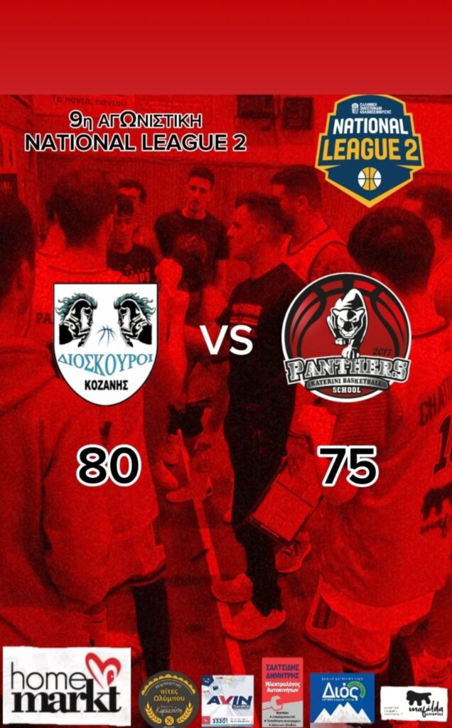 Μια συναρπαστική αναμέτρηση έδωσε ο ΓΑΣΠ Πάνθηρες Κατερίνης στην Κοζάνη, χάνοντας στις λεπτομέρειες τη μεγάλη νίκη απέναντι στους Διόσκουρους με τελικό σκορ 80-75, για την 9η αγωνιστική της National League 2.