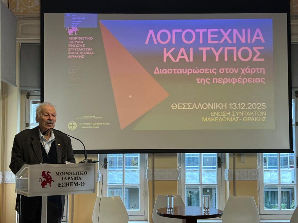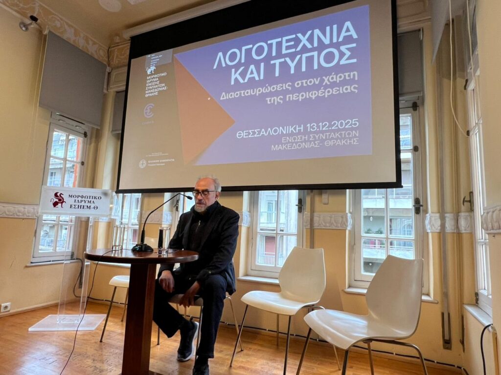 Το Σάββατο 13 Δεκεμβρίου, στην Αίθουσα Συνεδρίων της Ένωσης Συντακτών Μακεδονίας-Θράκης, λογοτέχνες, ακαδημαϊκοί και ερευνητές αναφέρθηκαν στις προκλήσεις και τις δυνατότητες της σχέσης μεταξύ δημοσιογραφίας και λογοτεχνίας, με ιστορική και γεωγραφική εστίαση στη Θεσσαλονίκη.