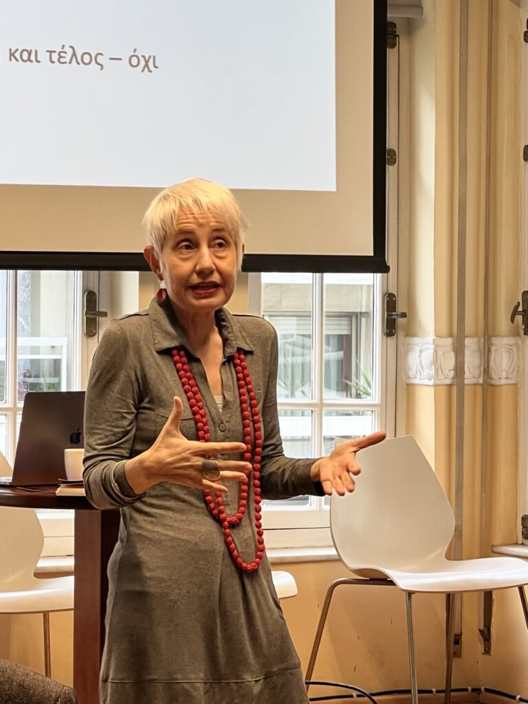 Η συγγραφέας Σοφία Νικολαΐδου έδωσε στους παρευρισκόμενους τα νήματα για να αναπτύξουν τις δικές τους αφηγήσεις με αφετηρία την επικαιρότητα στο εργαστήριο δημιουργικής γραφής με το οποίο ολοκληρώθηκαν οι εργασίες.